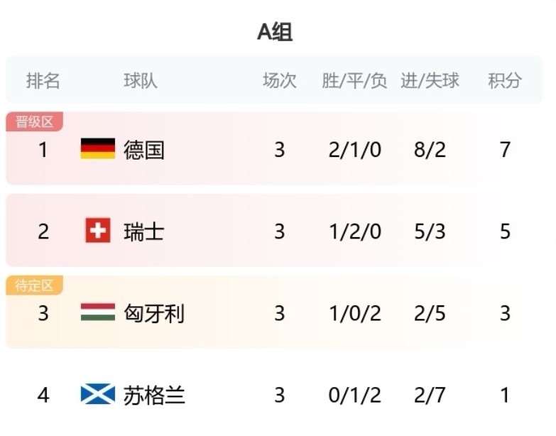 欧洲杯小组赛A组第3轮,德国对阵瑞士,手脚人,德国队前两轮的发达号称无缺,不仅2连胜,何况打入7球,成为现象最佳的队伍,被视为夺冠大热点。