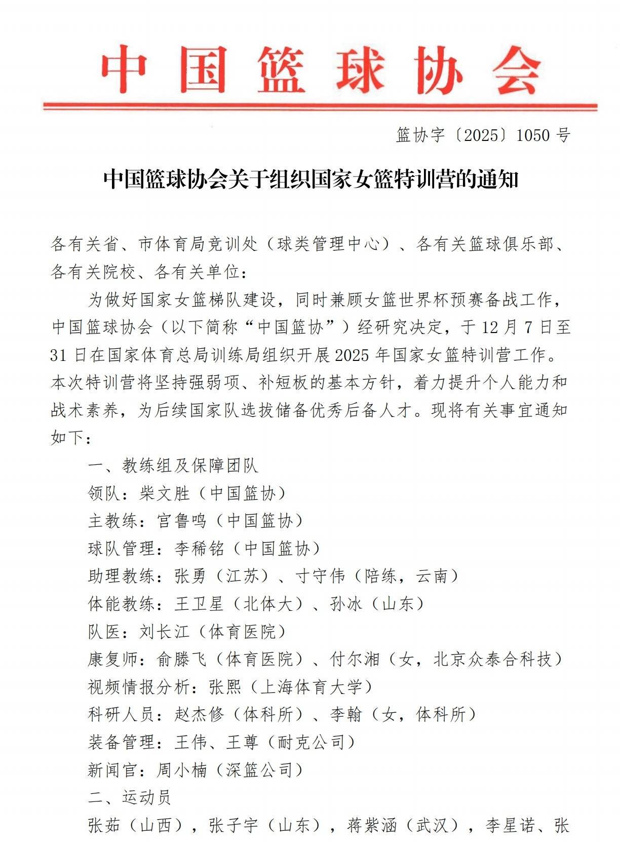 近日,中国篮协下发了对于组织国度女篮特训营的见告,来自武汉盛帆黄鹤队的球员蒋紫涵到手入选,将在12月7日至12月30日摄取特训。